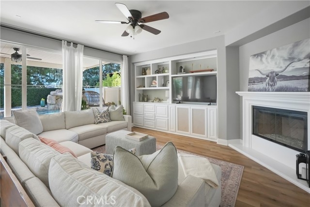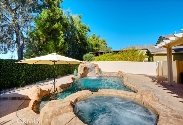 This beautifully upgraded home is located in the Harveston Lake community features a private backyard oasis with a pool, spa, and entertaining area. Enjoy the spacious, light-filled home offering an open floor plan, a main-level bedroom suite with full bath, plus an additional half bath downstairs and additional storage located beneath the staircase. The grand kitchen opens to the family room with built-in shelving and ambient lighting, and there’s a formal dining and living/bonus room on the main level. Upstairs includes a Romeo & Juliet balcony overlooking the entry. A primary suite with upgraded bath (standalone tub, walk-in shower, heated bidet toilet)on one side of the wrap around hallway. Around the corner there are three additional bedrooms and a spacious laundry room. The garage features 2 parking spaces, a converted office in the tandem area, overhead storage, whole-house water filtration, and ethernet throughout the home.