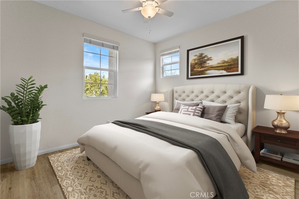 Fall in love with this beautifully UPDATED 3-Bedroom, 2.5-Bath home that perfectly blends modern style and comfort with the highly-sought after Harveston Lake lifestyle! This thoughtfully designed living space features newer LAMINATE flooring and UPDATED contemporary fixtures that flow seamlessly throughout the entire home. The recently UPDATED kitchen shines with crisp White Cabinetry, Tile Backsplash, Granite Countertops, and an Oversized Single-Basin Stainless Steel Sink...perfect for everyday living and entertaining. All 3 Bedrooms and Laundry Room are conveniently located UPSTAIRS. The spacious PRIMARY Suite features a WALK-IN closet with Custom Organizer and private BALCONY showcasing stunning mountain views...making it the ideal spot to unwind and watch the sunset. Both Secondary Bedrooms are good-sized and filled with natural light. Enjoy the added value of exterior Ring Security Cameras and whole house fan that promotes energy-efficiency and reduced utility costs. Outside you will find one of the larger Backyards in the neighborhood with plenty of grass, a covered patio, and the rare privacy of no rear neighbors. Located just minutes from the 15 and 215 freeways and surrounded by plenty of Restaurants and Shopping...this master-planned community is known for its vibrant, family-oriented lifestyle with activities and events offered year-round. Take a stroll around the LAKE, bike on lush pedestrian TRAILS, rent Pedal Boats off the BOAT DOCK, picnic at one of the many Open Lawn or GAZEBO areas, enjoy live music at the lakefront AMPITHEATER, or get active at the 19-acre SPORTS PARK with BASEBALL and SOCCER Fields, a Concession Stand and PLAYGROUND! Residents also have access to the 8,000 sq ft "Lake House" they can use for birthday parties to large scale weddings...along with a Yoga Room, Craft Room, Pool Pavilion, Jr Olympic Pool, large Spa and Splash Park. There is also an Elementary School and Day Care Facility located INSIDE the Community and kids can easily walk to the nearby Middle and High Schools which are part of the Award-Winning TVUSD. This MOVE-IN READY home is a rare opportunity to own one of the most AFFORDABLE, beautifully UPGRADED homes in this unbeatable Community. Don’t miss out!