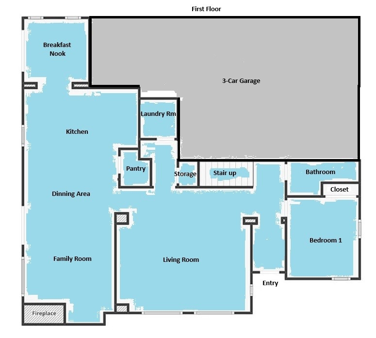 Thoughtfully designed for comfort and function, the home includes a formal living room, a spacious family room, and a cozy breakfast nook. The kitchen boasts a functional island with bar seating, perfect for casual dining or entertaining. The laundry room is smartly positioned away from the main living areas, keeping your home peaceful and organized. Ample built-in cabinetry and a 3-car garage with overhead storage ensure you have space for everything.