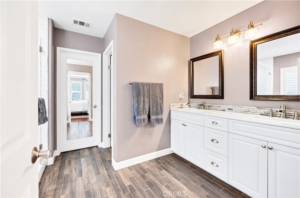 You won’t want to miss this Harveston lake-view home, ideally located less than 100 steps from the lake—offering front-porch views and the Harveston lifestyle without the premium of lakefront pricing. Immaculate and truly move-in ready, this 3-bedroom, 2.5-bath residence blends comfort, style, and thoughtful upgrades throughout. Upon entry, you’re welcomed by a formal sitting room and dining room, creating an inviting first impression. The kitchen is beautifully appointed with quartz countertops, a farmhouse sink, subway tile backsplash, and stainless steel appliances, and opens seamlessly to the family room featuring a cozy fireplace and built-in entertainment center—perfect for everyday living and entertaining. An upgraded downstairs powder room includes a bonus storage closet for added convenience. Upstairs, you’ll find all three bedrooms plus a dedicated office space, along with an upstairs laundry room. The spacious primary suite offers an upgraded bathroom with dual sinks, a separate soaking tub and shower, and a walk-in closet. Two additional bedrooms share a full bathroom with an upgraded vanity. Additional features include hardwood flooring throughout both levels, QuietCool whole-house fan, crown moulding, upgraded baseboards, surround sound, new lighting, and ceiling fans throughout. The backyard is designed for a low-maintenance lifestyle and serves as an extension of the main living area, featuring a large Alumawood patio cover and easy-care landscaping. The 2-car garage includes built-in cabinetry for excellent storage. Harveston is one of Temecula's most desirable communities, favored by so many for the amenities, olympic sized community pool and splash pad, sports parks, easy commuting, shopping, Ysabel Barnett Elementary and Chaparral High School, and of course the LAKE activities! Close to wine country, Promenade Mall, Old Town Temecula, and the 15 Freeway, come and see why Harveston is at the top of the list for buyers looking for communities to live in Temecula!