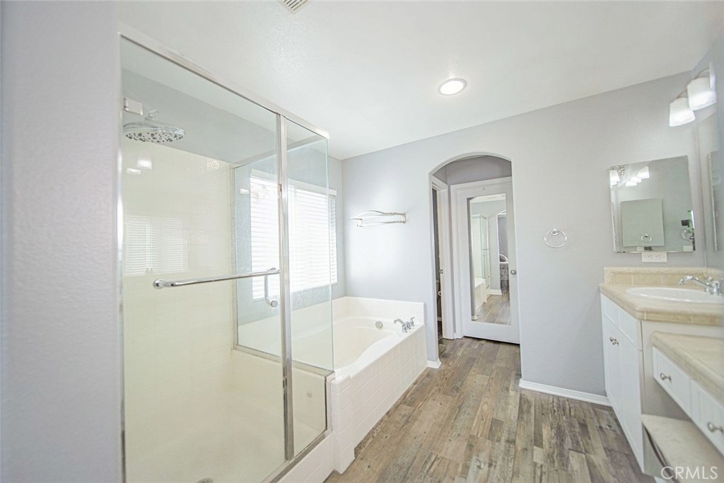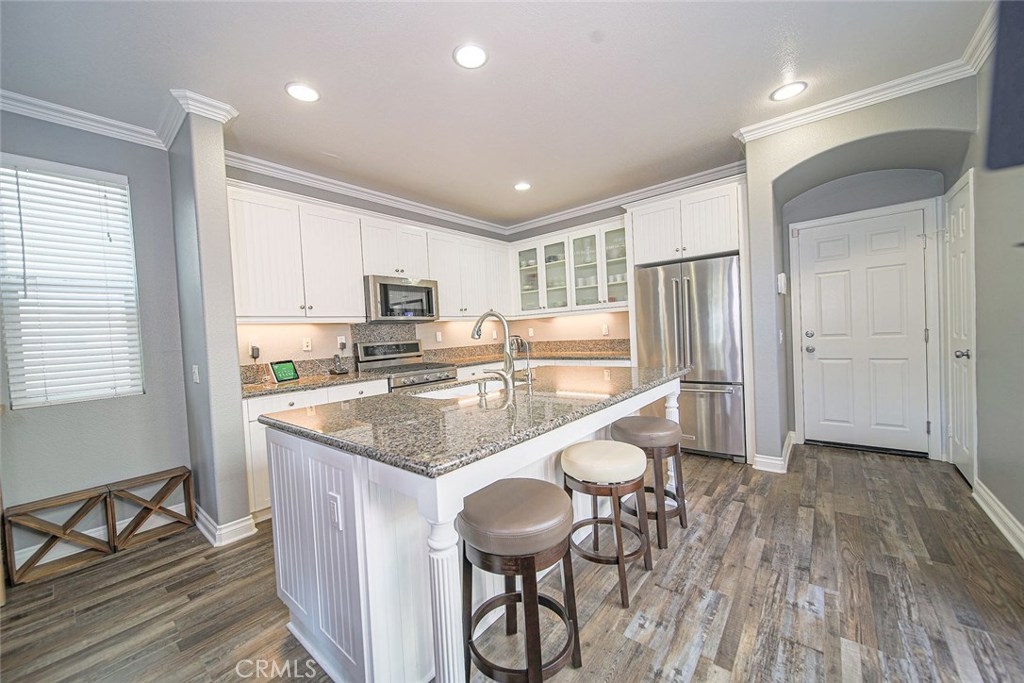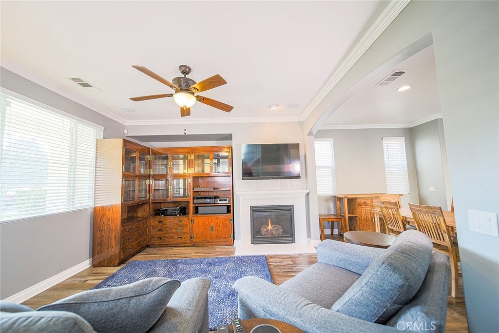 Harveston cottage just a short walk to the lake and clubhouse, this beautiful two story home offers 1684 sq.ft., 3 bedrooms, 2.5 bathrooms. Beautiful custom paint, vinyl plank flooring, and crown molding through out. Entering the home you are welcomed by a spacious entry which leads into an open floor plan. The living room boasts a beautiful fireplace, with surround sound in the ceiling with a seven speaker system. The Kitchen offers KitchenAid stainless steel appliances, granite counter tops, white cabinets, under counter lighting, a spacious pantry, and a filtered water reverse osmosis system under the kitchen sink. All the bedrooms are upstair as well as the laundry room. A large Master Suite with a spacious master bathroom offers a large soaking tub and separate shower with dual sinks, in addition the walk-in closet has custom built-ins. The two secondary bedrooms are comfortable in size and both the closets have custom built-ins, and ceiling fans through out the home. There are TV wall mounts in the living room and all three bedrooms. A hard wire alarm system and a programable Nest Thermostat that works with Alexa. This low maintenance life style comes with many perks. Start your morning with a stroll around the stunning lake. Also, the Harveston clubhouse community amenities includes swimming pool, Jacuzzi, splash pad, and so much more.